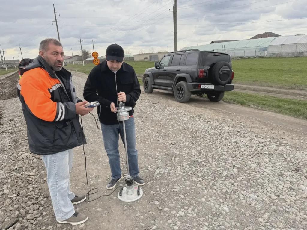 Качество работ контролируется лабораторией дорожного управления, которая уже провела проверку уплотнения основания на объекте.